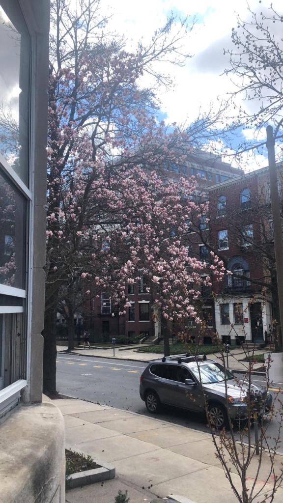تبدو المدينة والجامعة خصيصًا غريبة عني وهي خالية من الأشخاص إلى هذا الحد. أصبِّر نفسي بأن ذهب الكثير وبقي القليل على أن تصلني تذكرتي. أقلق بشأن قلق ماما فقط، وأتمنى أن تكون تتعامل مع الأمر بشكل أفضل مني -ياربي يا كريم-. تمر الأيام بمحادثات مرئية مع صديقاتي سواءً في السعودية أو أمريكا وأحيانًا لندن. محظوظة أنا بكم الحب الذي أحظى به من أحبتي. ستمر يا أفنان ستمر وستضحكين على نفسِك وكتلة الأفكار السوداوية التي تتشبثين بها. الصورة السابقة ملتقطة عندما خرجت لأخذ أغراض البقالة التي طلبتها وكما ترون الشجرة بجانب عمارتي مشجرة أما شجرة عمارتي فزعلانة علينا لسبب أو لآخر. لم اقرأ هذا الاسبوع ربما الاسبوع القادم أو في الحجر.
