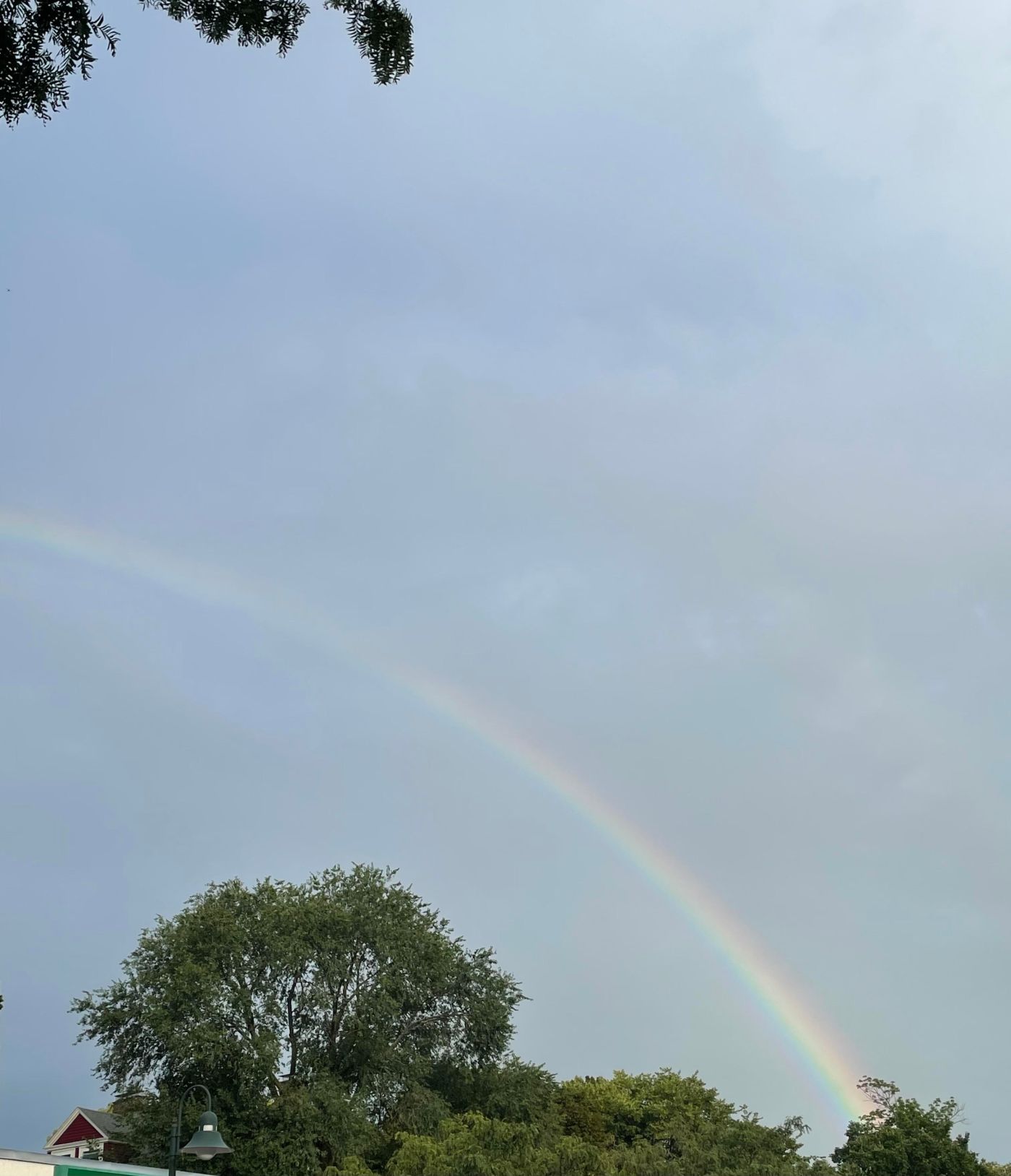 كل الحب والفخر والاعتزاز من قلبي لكِ، وعندما تنتهي هذه الأزمة أعدِك بصورة تتسرب فيها السعادة من أعيننا للناظر إليها، عليها البيت الغزلي الذي وعدتك به منذ فترة طويلة، واقرأ عليكِ قبل أن نلتقطها “ولا بُدَّ لليل أن ينجلي ولا بُدَّ للقيد أن ينكسر”. أمَّا قوس قزح في الصورة المرفقة مع التدوينة ظهر بشكل مفاجئ رغم أنني لم انتبه للمطر حتى اليوم، لكن ربما كما ظهر -من حيث لا أعلم- سيأتي يوم بعدما عملنا بالأسباب يشرق على كل واحدة فينا قوس قزحها الذي تحتاجه بفضل من الله ورحمة.